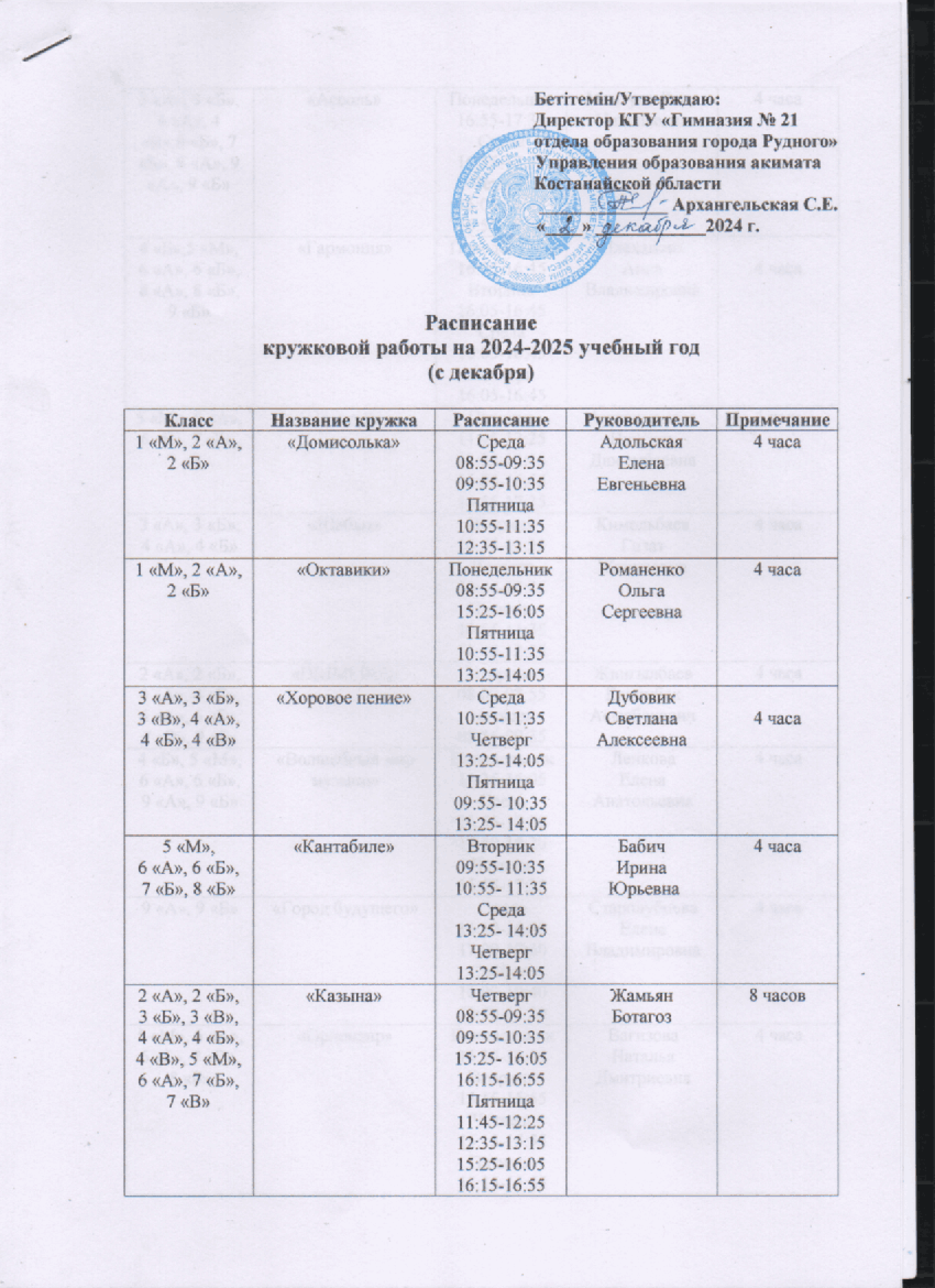Расписание кружковой работы на 2 полугодие 2024 - 2025 учебного года