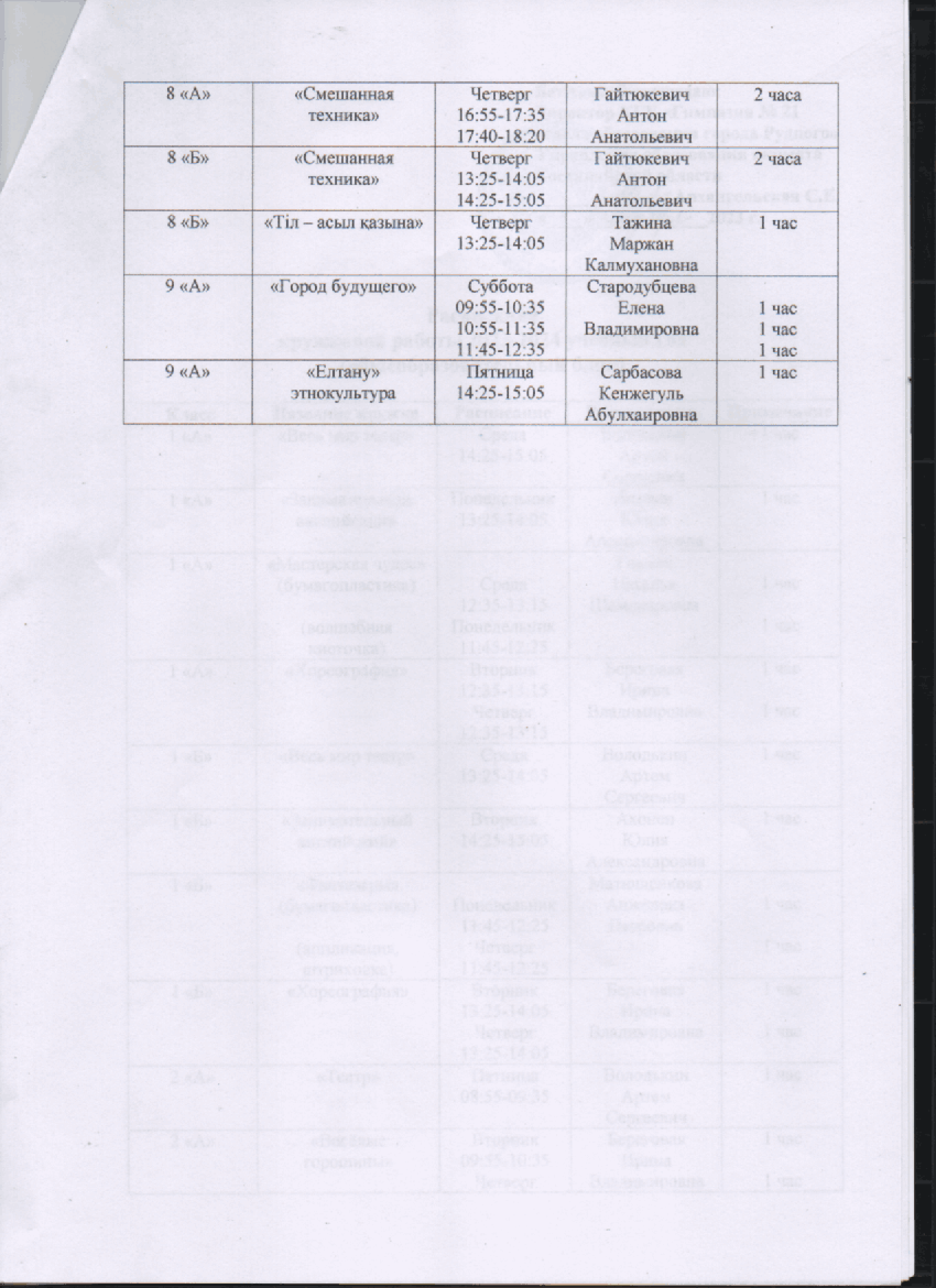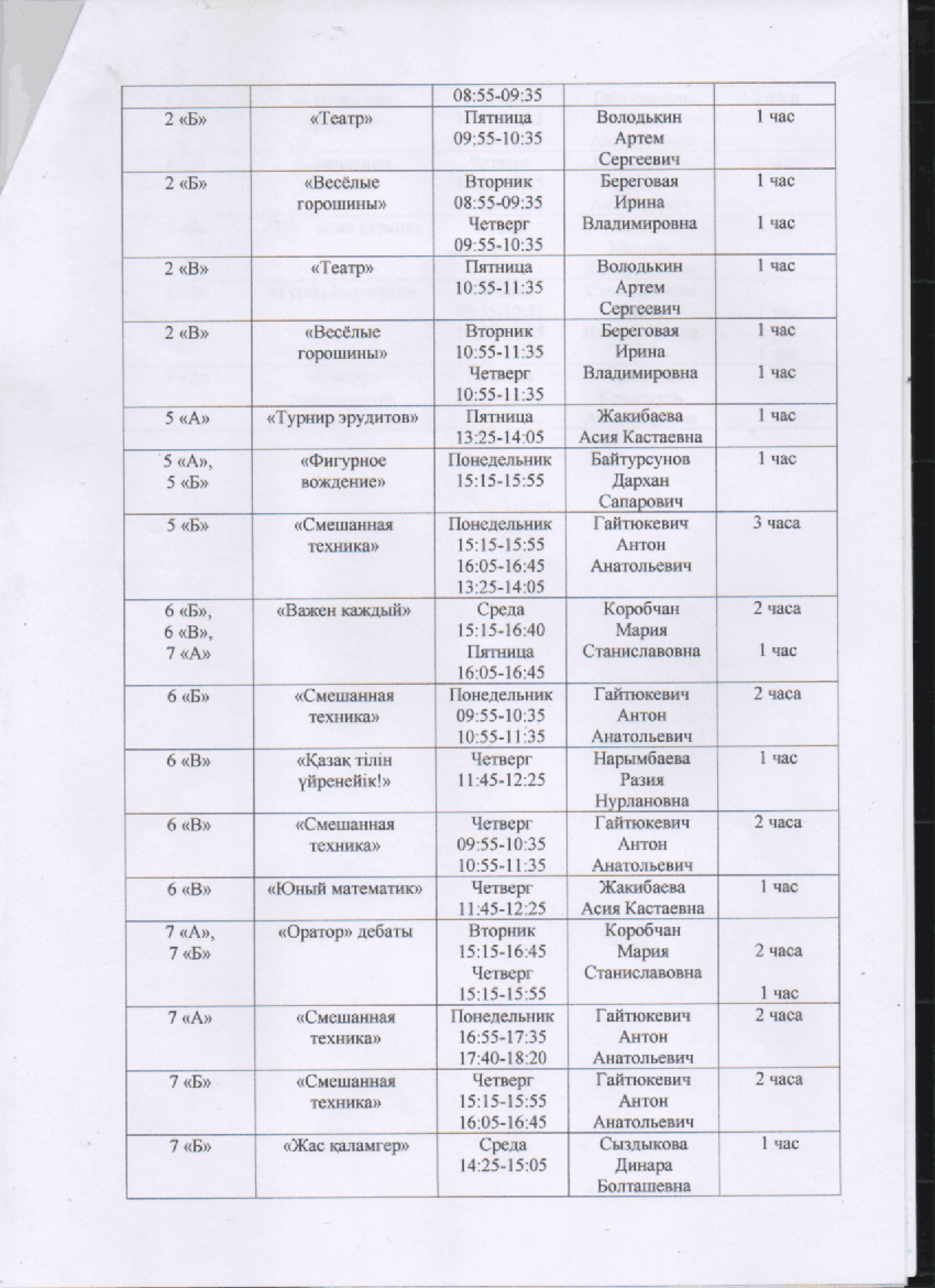 Расписание кружковой работы на 1 полугодие 2023 - 2024 учебного года