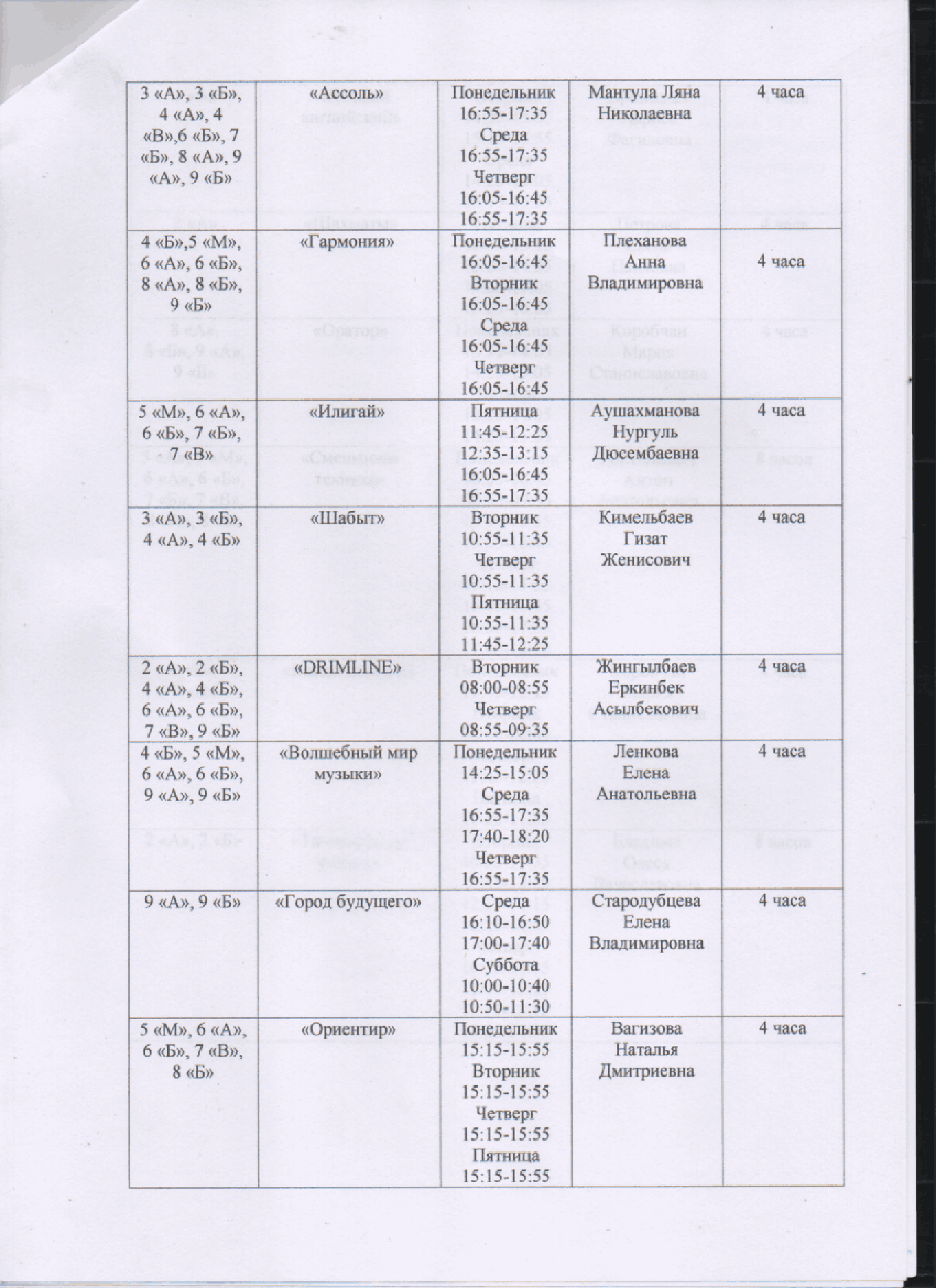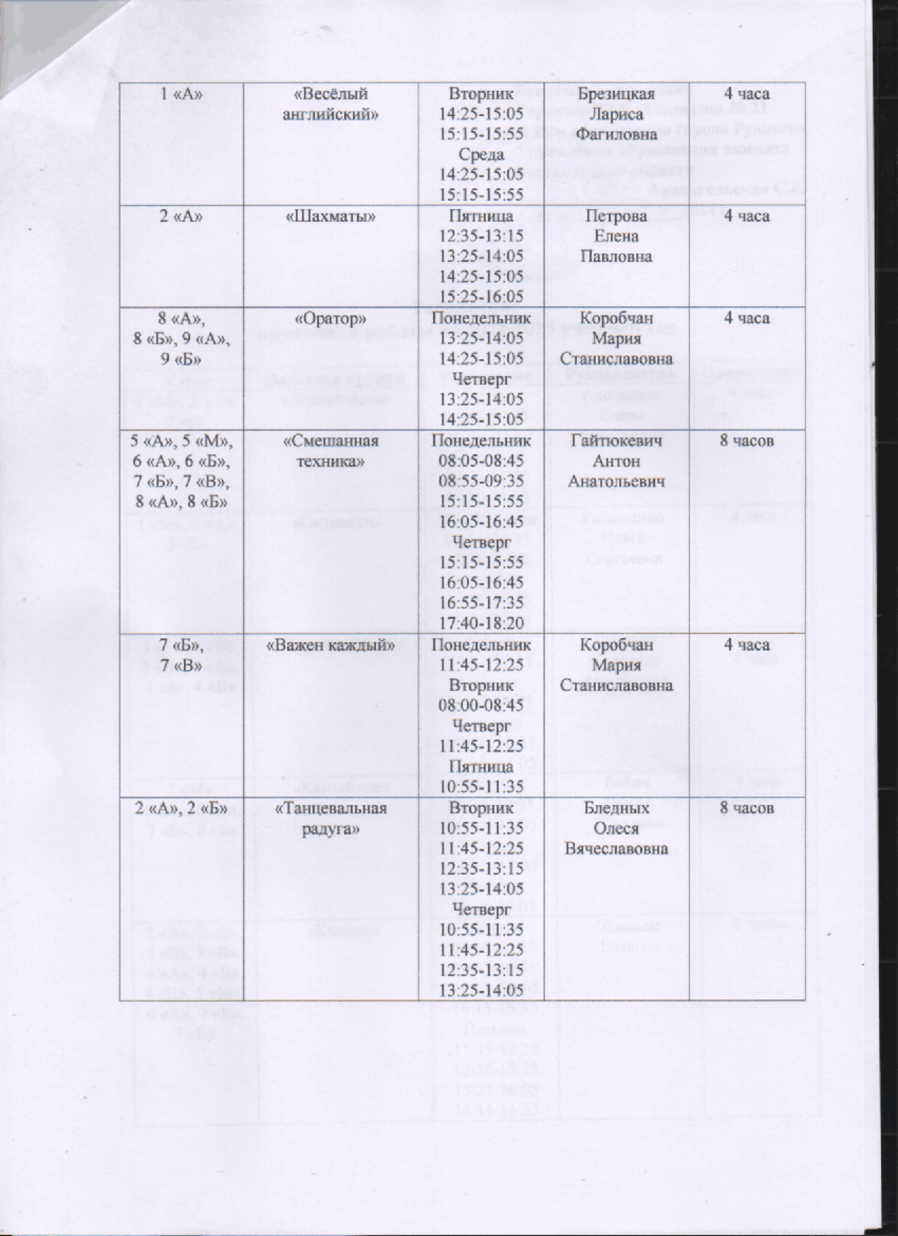 Расписание кружковой работы на 1 полугодие 2024 - 2025 учебного года