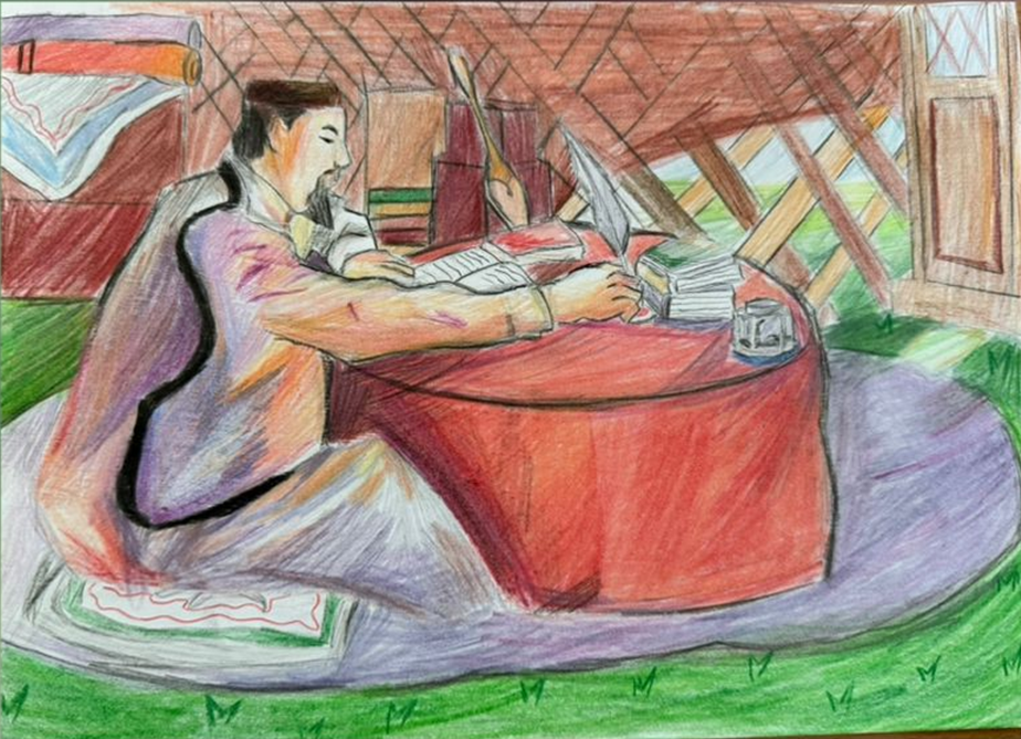 Школьный конкурс рисунков “Абай әлемі” в честь 180-летия со дня рождения великого поэта, философа и просветителя Абая Кунанбаева.