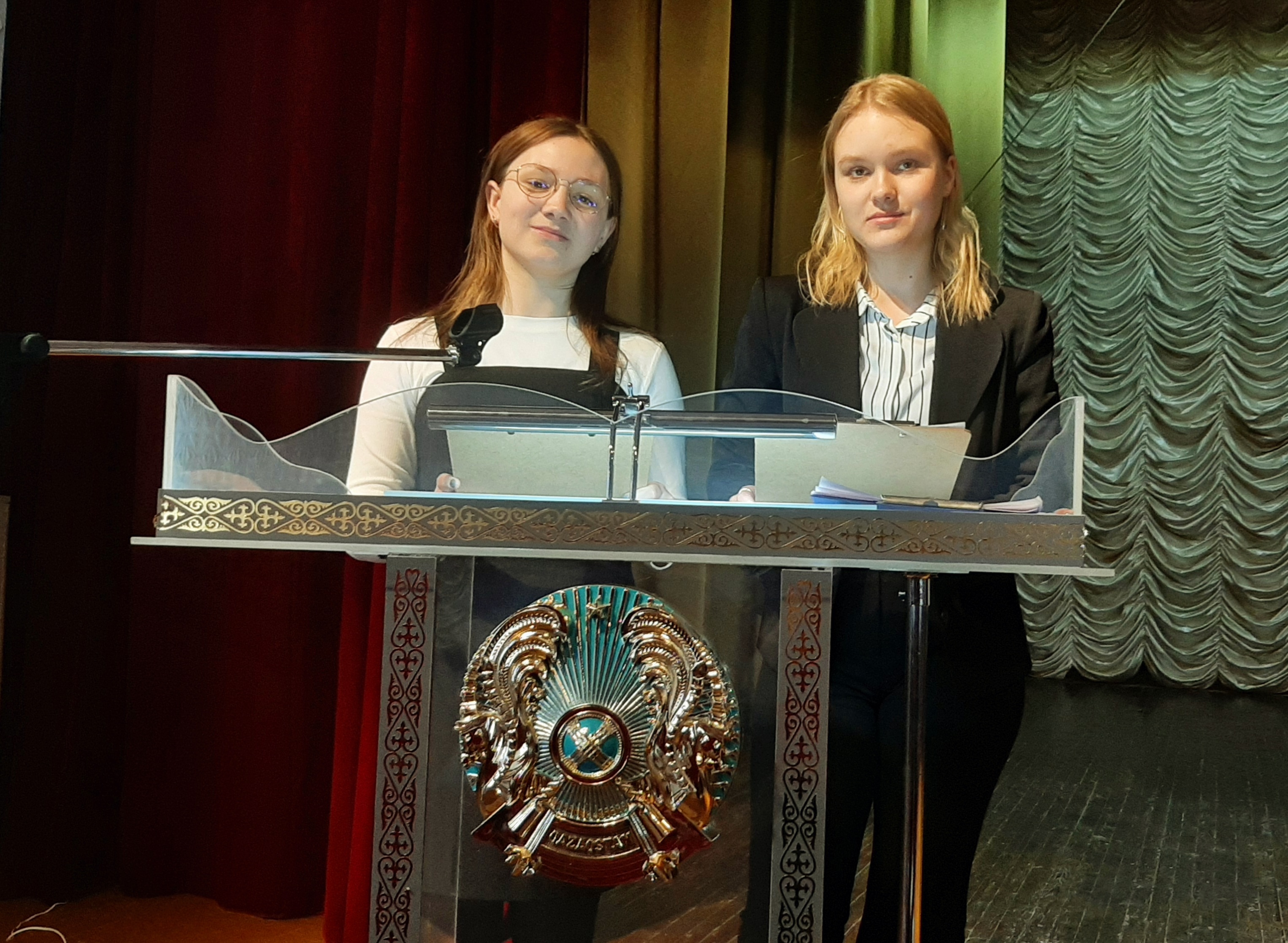 Представители школьного парламента Подваленчук Александра - руководитель фракции образования и культуры и Щелокова Екатерина- руководитель фракции права и порядка представили на конкурсе проект под названием "Наш мир - сцена!" и заняли II место.