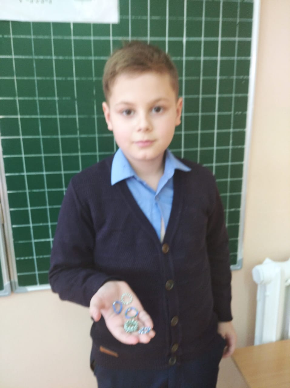 Биль Артур, учащийся 4 "Б" класса сегодня представил свое увлечение и это плетение из бисера. Мастеря поделку из бисера, Артур учится читать и понимать схемы. Развивает свое пространственное мышление. Собирая себе браслет или кулон, он творит и создает, развивает свое воображение и творческое начало. Артур отмечает, что кропотливость бисероплетения, вырабатывает у него терпение и усидчивость.