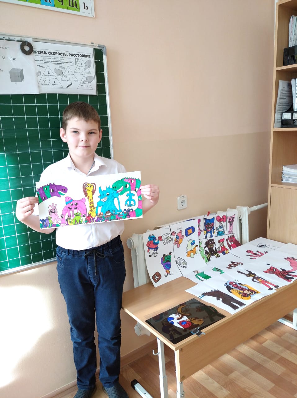 Знакомьтесь, Карасёв Кирилл, учащийся 4 "Б" класса. Кирилл увлекается рисованием, делает своим родным на праздники открытки. Любимые персонажи, которые выходят из-под руки Кирилла - добрые монстры - это таинственные и удивительные существа, которые притягивают внимание своей необычной натурой. Герои Кирилла отличаются от других монстров своим дружелюбным и миролюбивым характером, их глаза полны доброты.