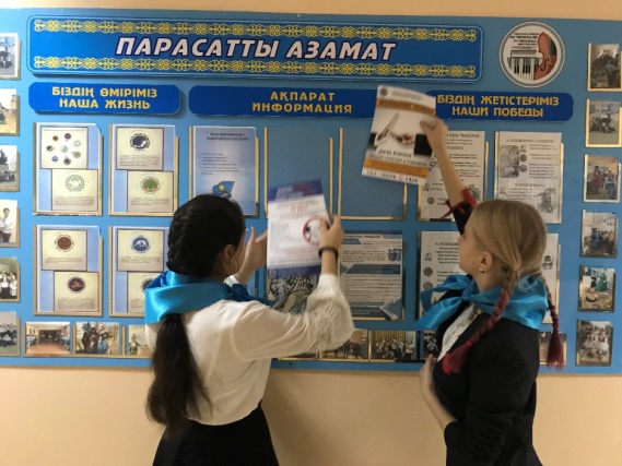 - В сентябре членами клуба «Адал ұрпақ» был оформлен стенд о работе гимназии по антикоррупционной политике.