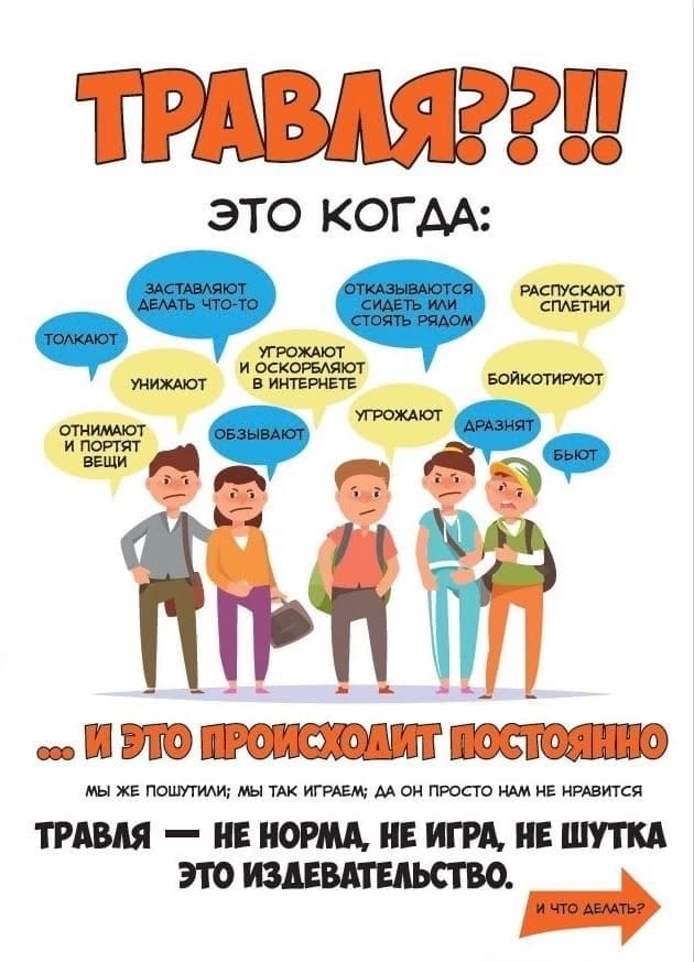Подробнее: Травля это когда: заставляют делать что то, толкают обзывают угрожают дразнят бьют