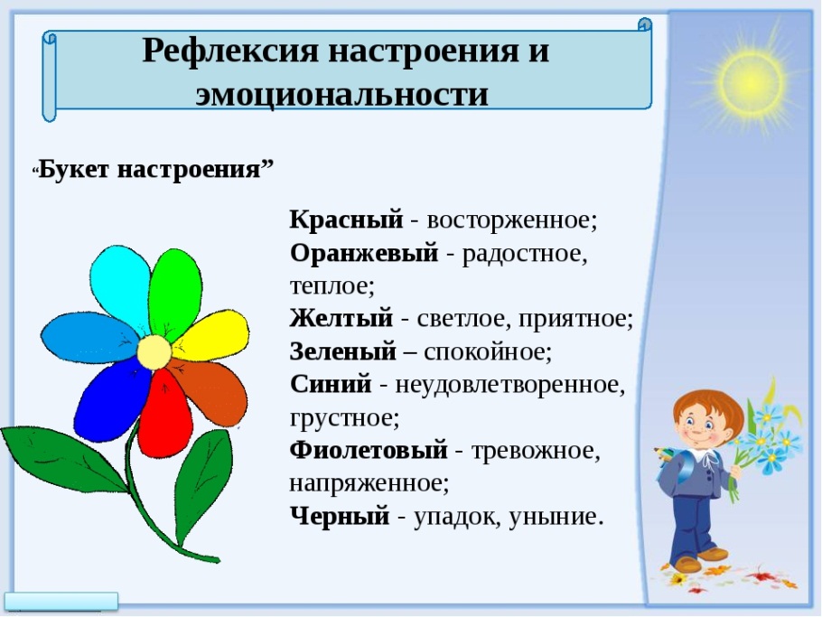 - Используя, форму рефлексии настроения и эмоциональности «Букет настроения», расскажите о своём эмоциональном состоянии во время прочтения книги.