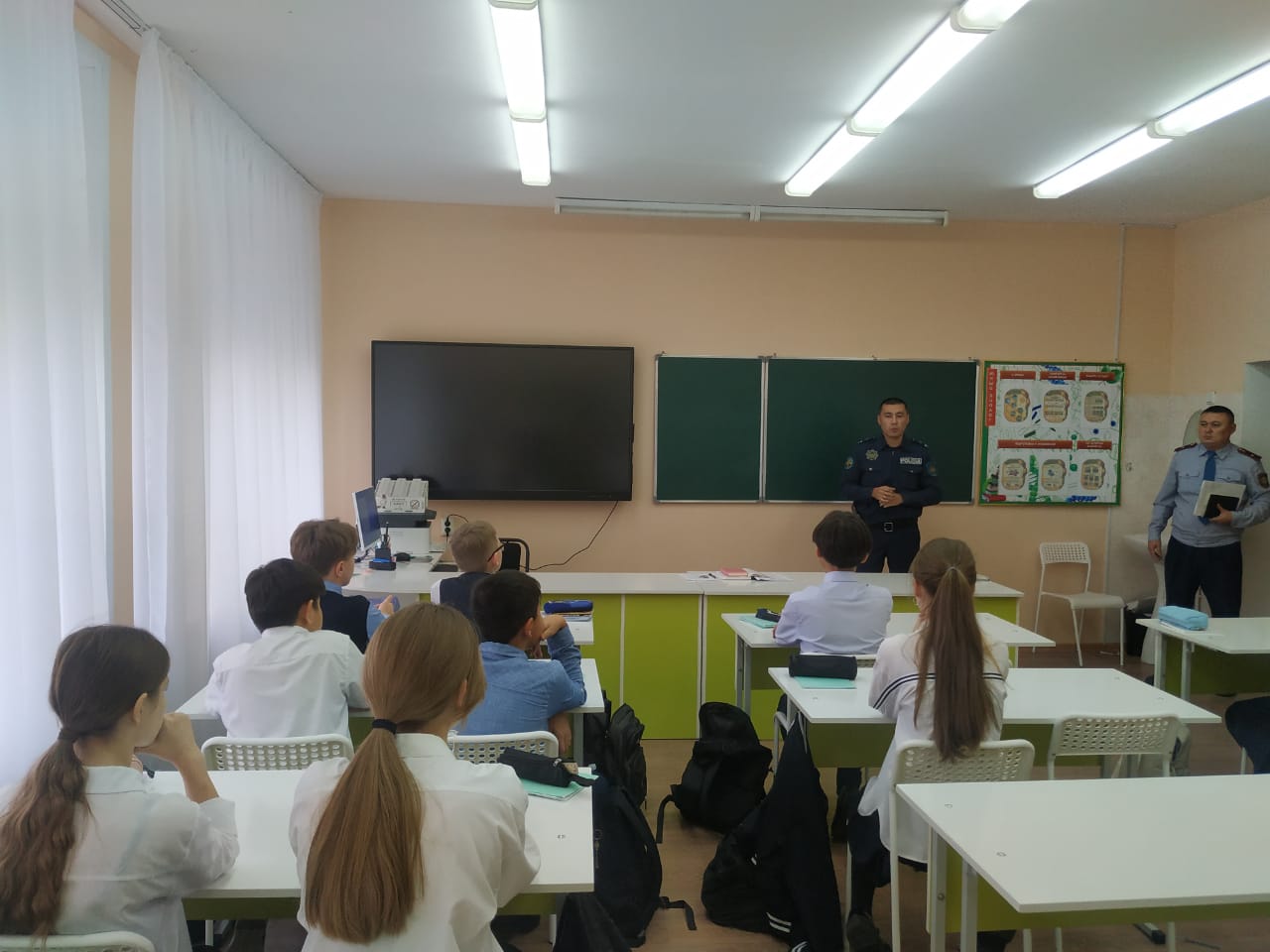 28.11.2023г начальник ИВС г.Рудного майор полиции Нурекин Нұрлан Бейсенбайұлы, старший участковый полиции Ережеп Арслан Сәкенұлы провели профилактические беседы с учащимися 5 «А», 5 «Б» и 7 «Б» классов на тему: «Права и обязанности несовершеннолетних», «Ответственность несовершеннолетних и их родителей за совершенные правонарушения» с разъяснением норм административного и уголовного законодательства РК.