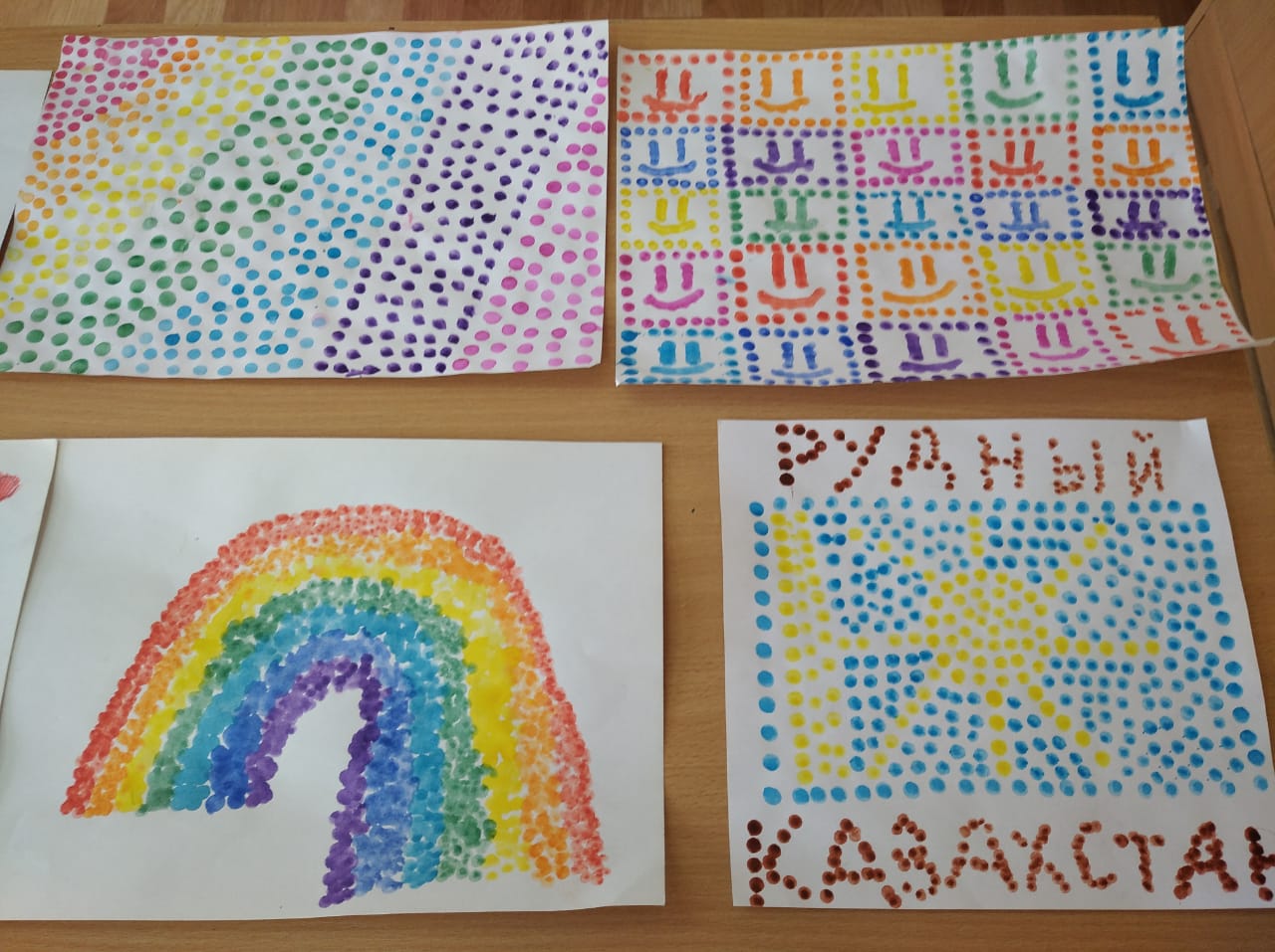 Следующим представителем "Ярмарки увлечений" является учащаяся 4 "Б" класса Дарья Клименко. Даша предложила вниманию одноклассников технику "рисование ватными палочками". Особенностью картин этой техники в том, что они выполнены раздельными мазками. Краски не смешиваются, но глаз воспринимает изображение как единое целое. Важно отметить, что мазки не всегда имеют правильную, округлую форму. Это могут быть продолговатые линии, точки, прямоугольники и т. д.